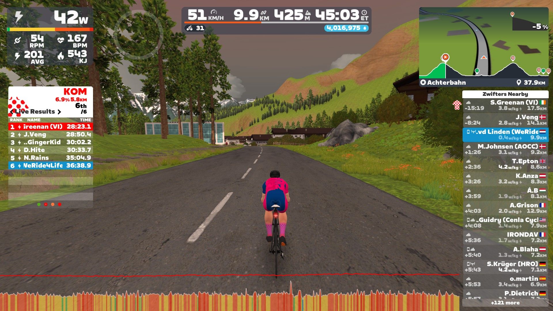 Dit was er weer een om in de boeken te zetten. De kramp sloeg meerdere malen toe maar we did it! Wederom Meester van de Kale Berg. - myWindsock Report -- Weather Impact™: -0.9% Headwind: 43% @ 1.5 - 3.7 m/s Longest Headwind: 01h 39m 20s Air Speed: 14.9 km/h Temp: 22.1-28.5 °C Precip: 0% @ 0 Inch/hr -- END --